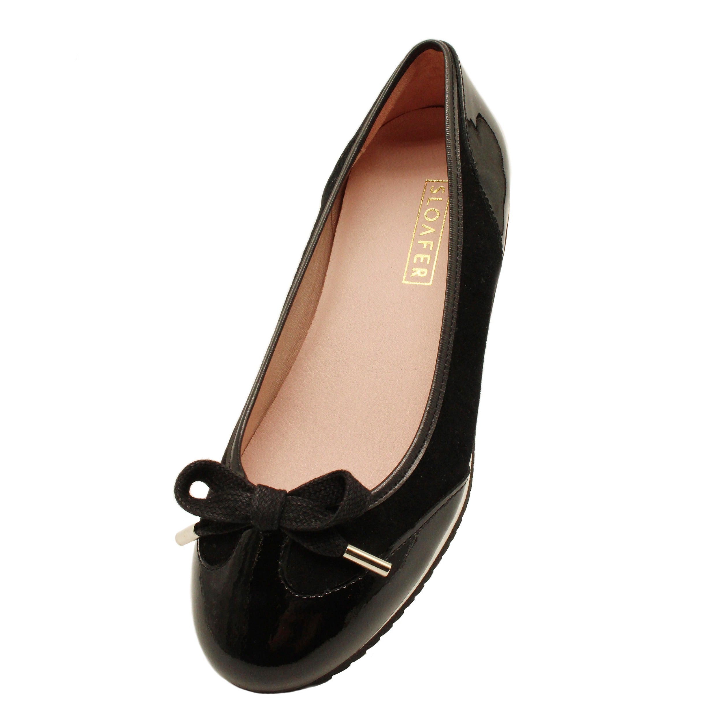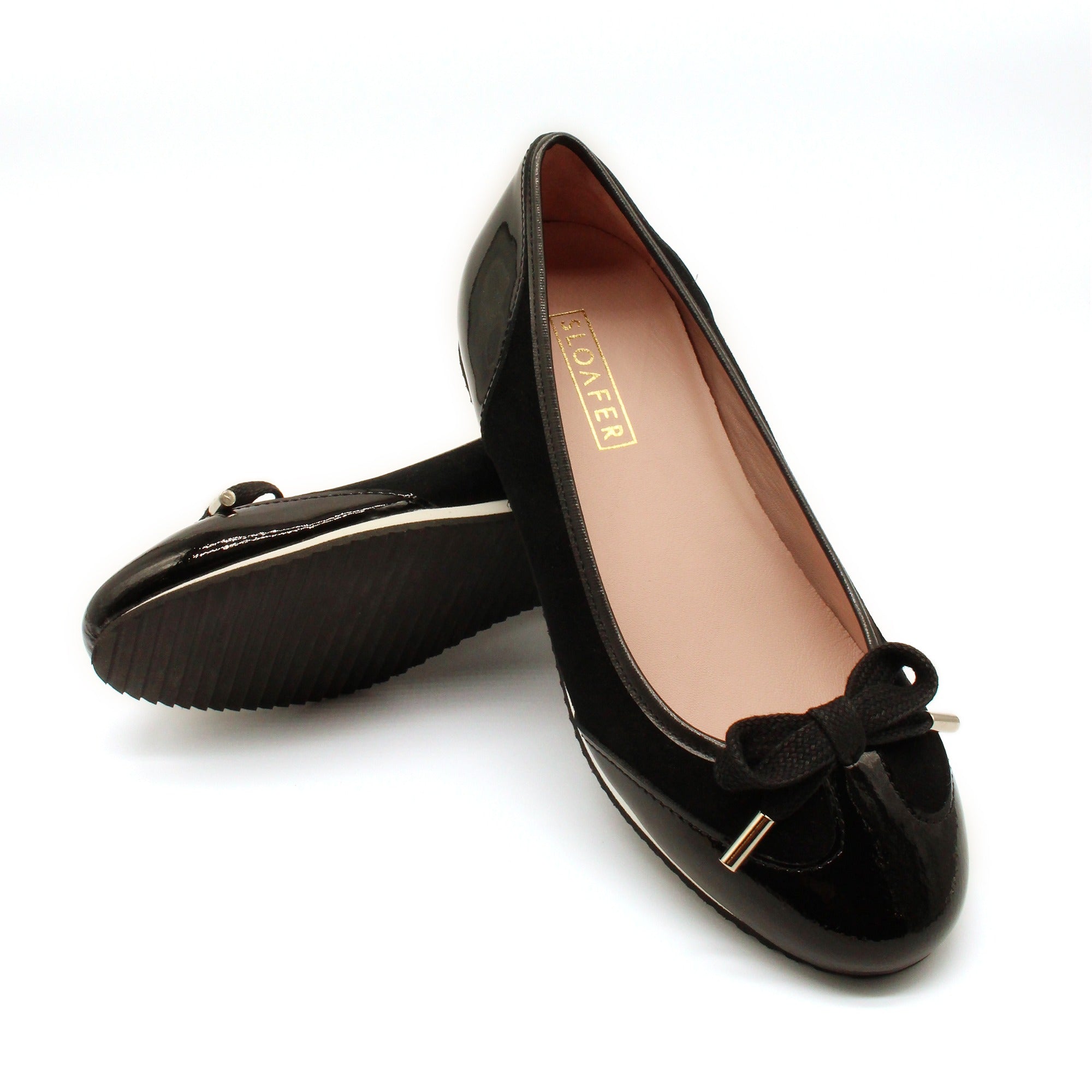 Your go-to ballet pump in black patent & suede, handmade in Portugal.
